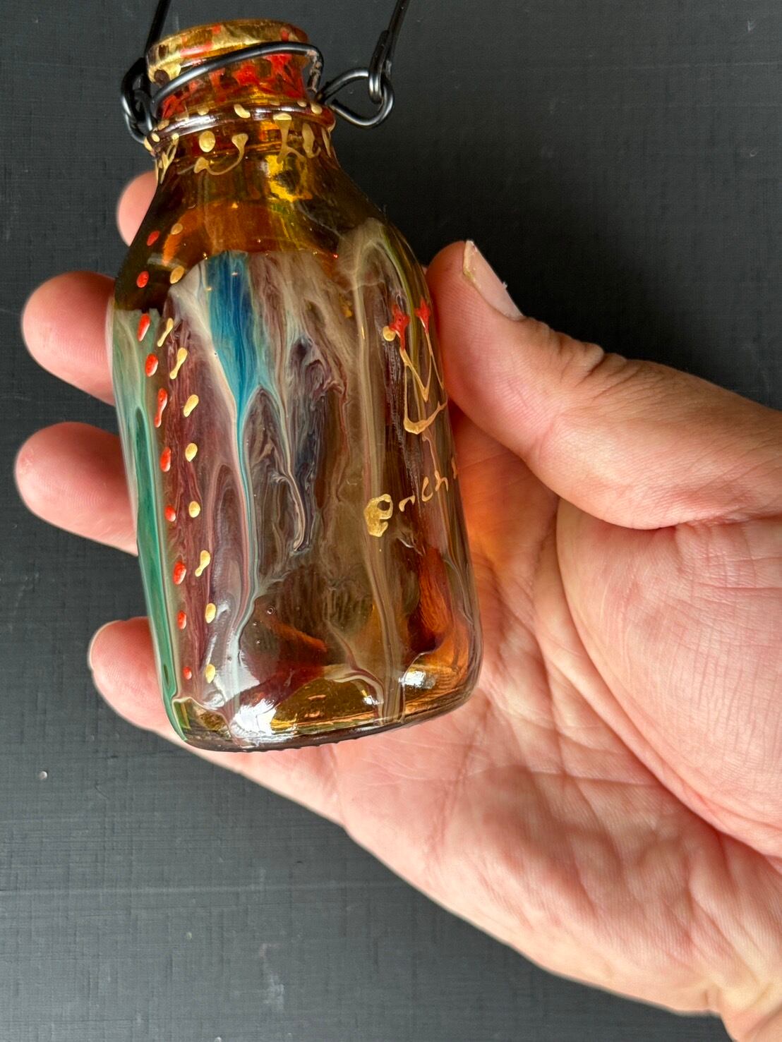 アンティーク風のガラスの容器に作家が絵付けしました。そのまま飾っても、好みの草花を活けても、、、世界に一つの彩りが、やさしい豊かさと光を運んでくれます